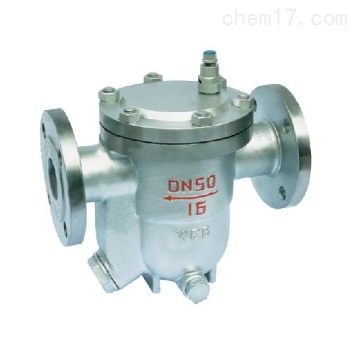 的结构简单,内部只有一个精细研磨的不锈钢空心浮球,既是浮子又是启闭件,无易损零件,使用寿命很长。装置刚起动时,管道内出现空气和低温冷凝水,手动排空气阀能迅速排除不凝结气体,疏水阀开始进入工作状态,低温冷凝水流进疏水阀,凝结水的液位上升,浮球上升,开启阀门。装置很快提升温度,管道内温度上升到饱和温度之前,自动排空气阀已经关闭;装置进入正常运行状况,凝结水减少,液位下降,浮球随液位升降调节阀孔流量;当凝结水停止进入时,浮球随介质流向逼近阀座,关闭阀门。自由浮球式蒸汽疏水阀的阀座总处于液位以下,形成水封,无蒸汽泄漏。